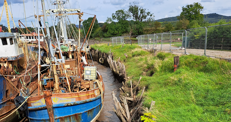 To prevent further deterioration we have installed a temporary banking in the harbour to stabilise the wall.